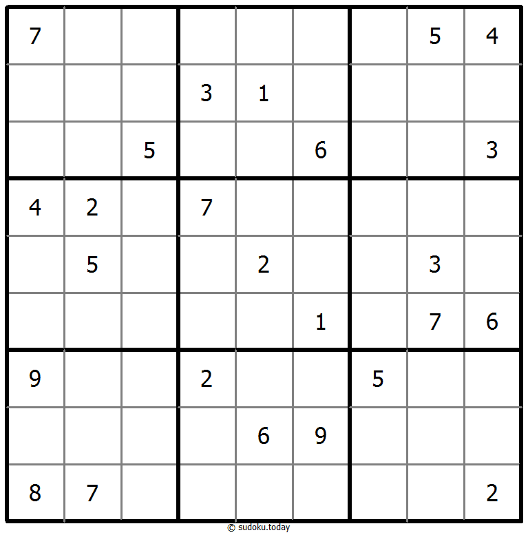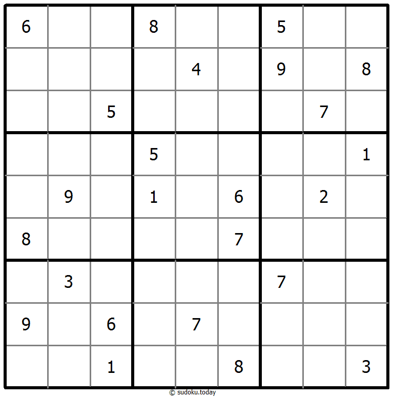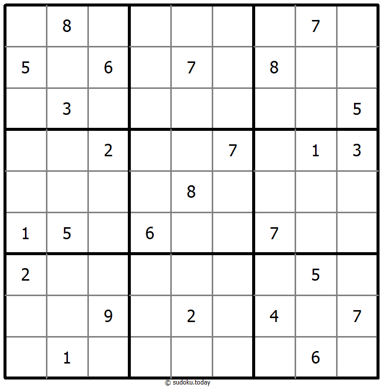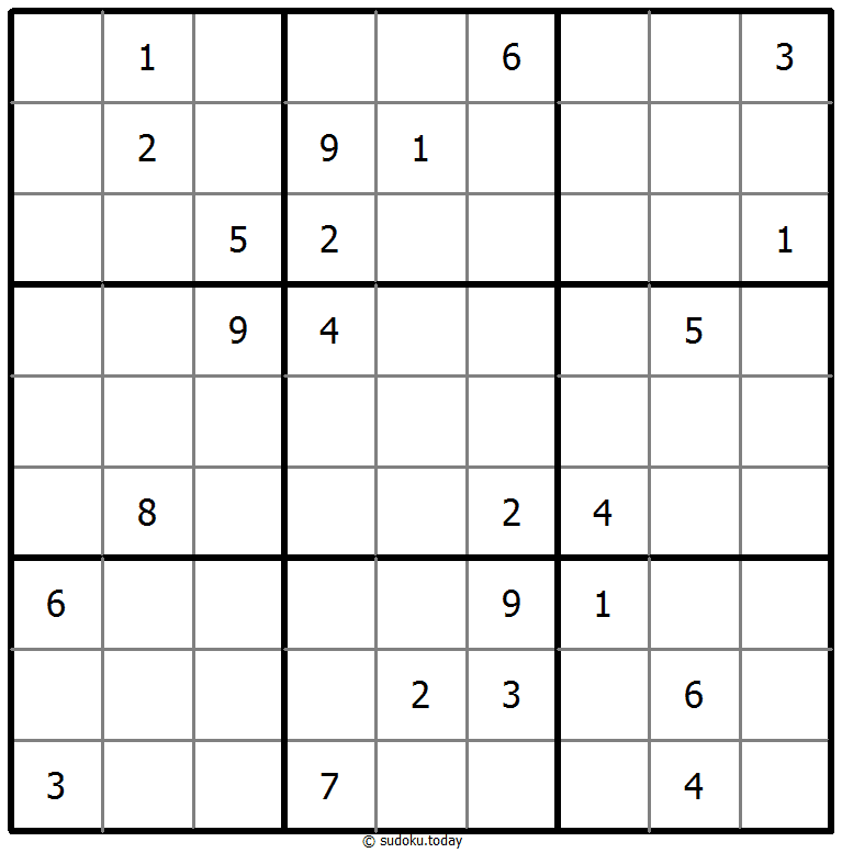 - 将1到9的数字放入每个空方块中,以便每个数字在每行、每列和9个3x3区域中恰好都出现一次。