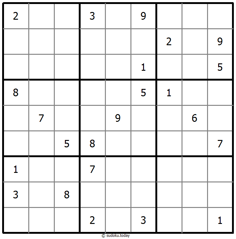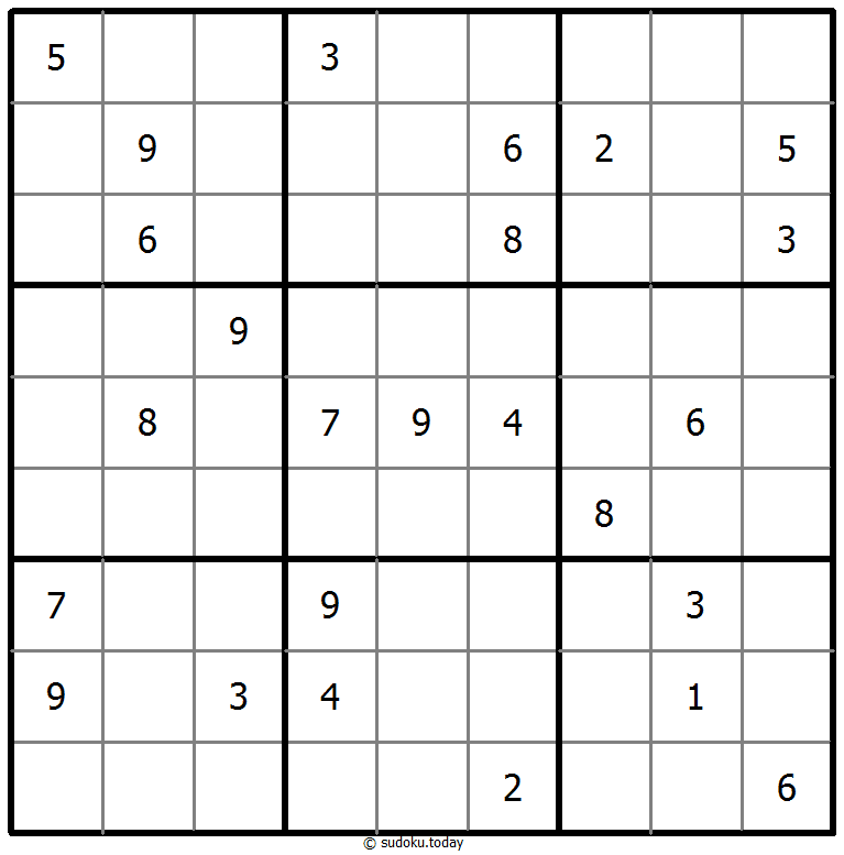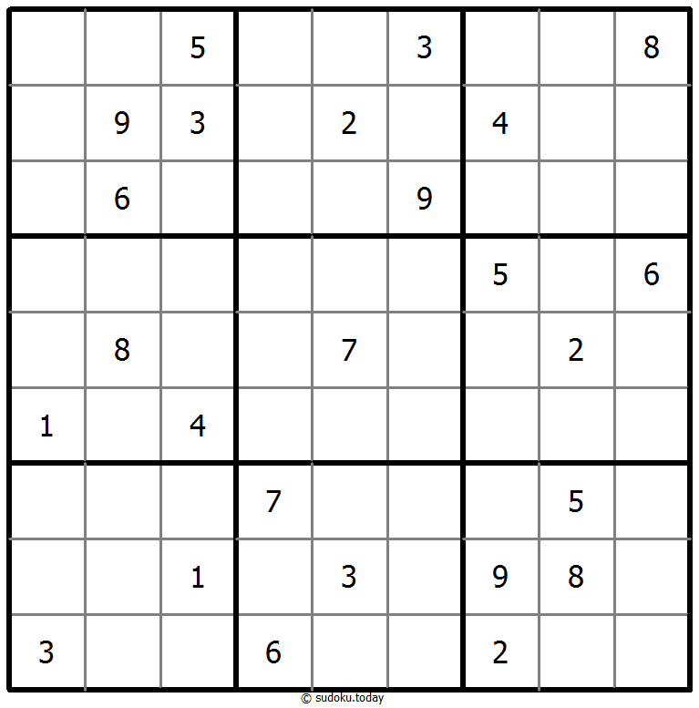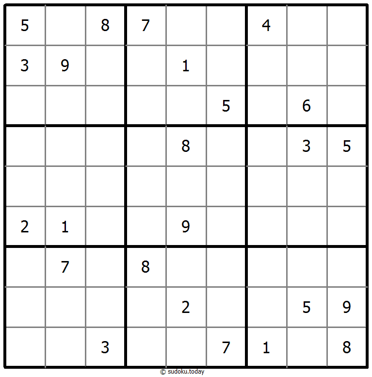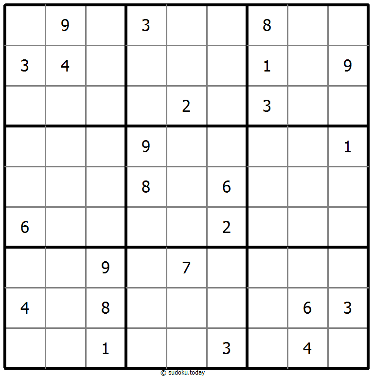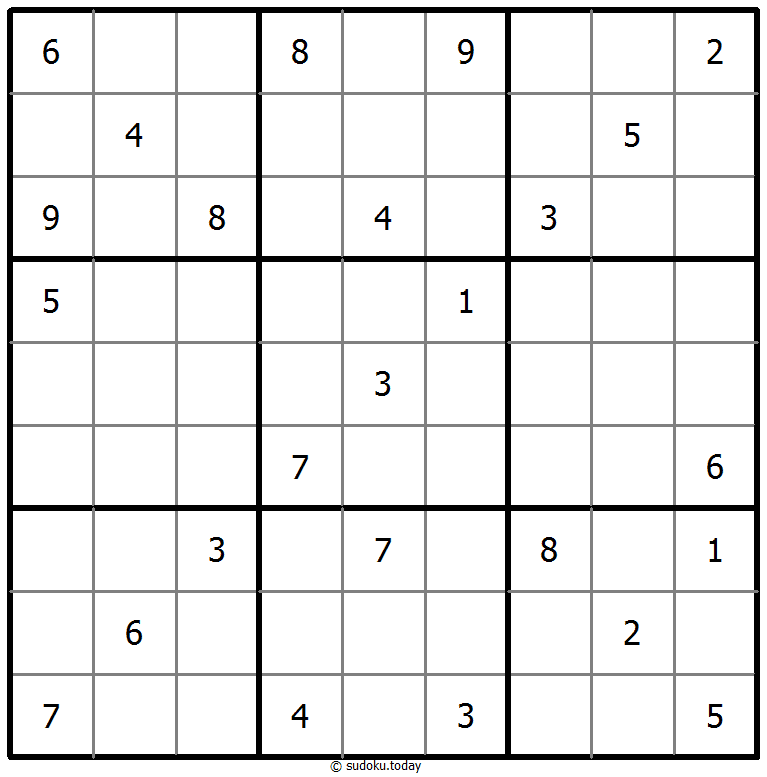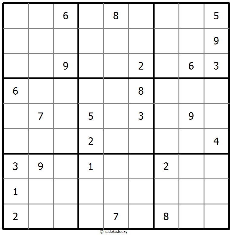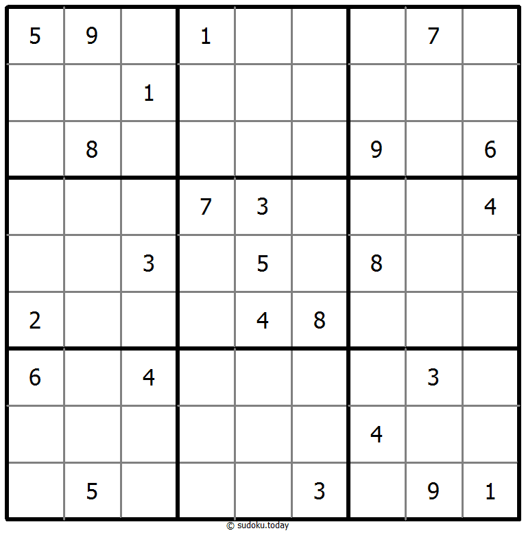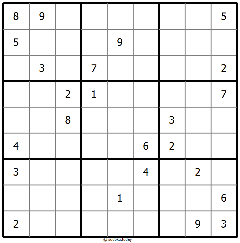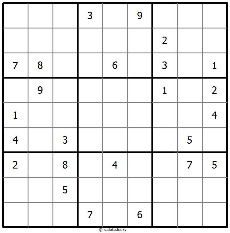 - 将1到9的数字放入每个空方块中,以便每个数字在每行、每列和9个3x3区域中恰好都出现一次。