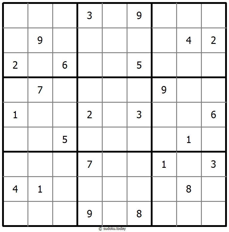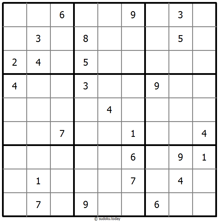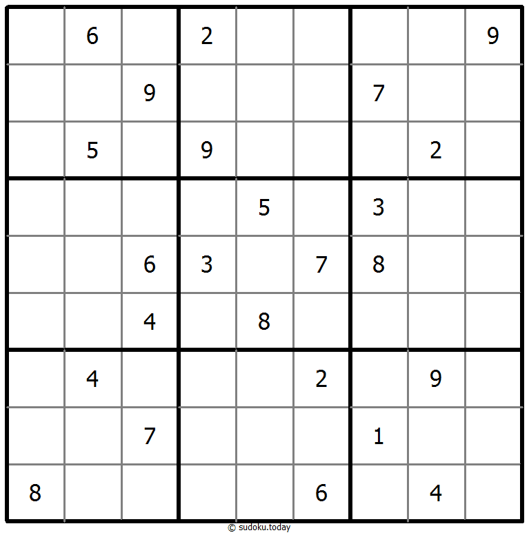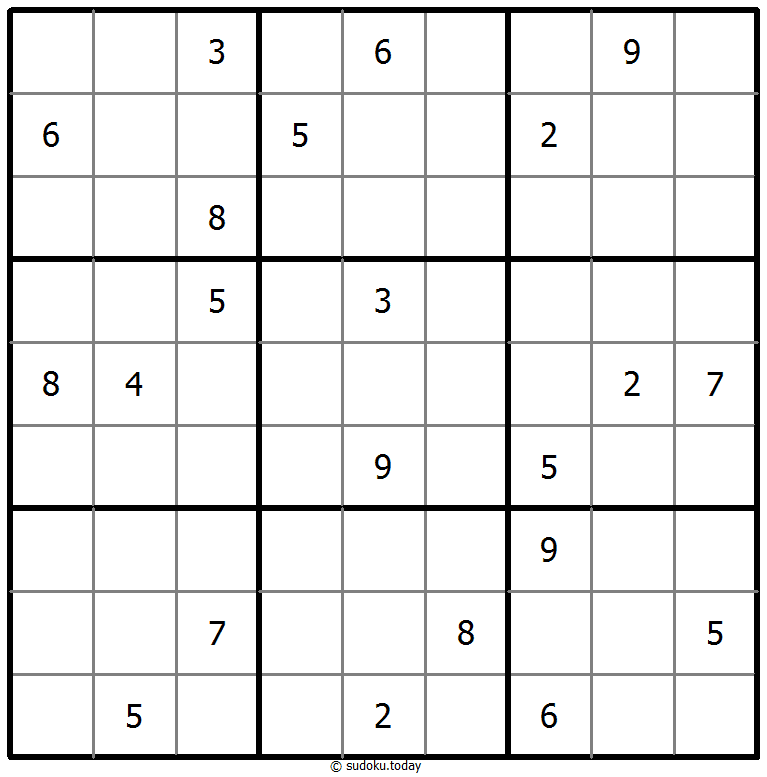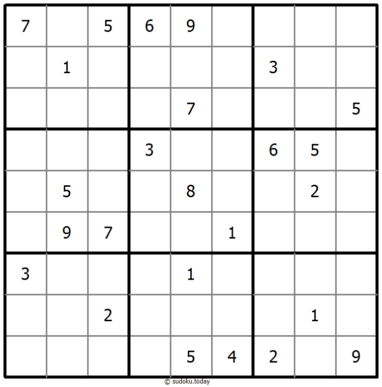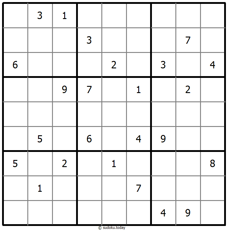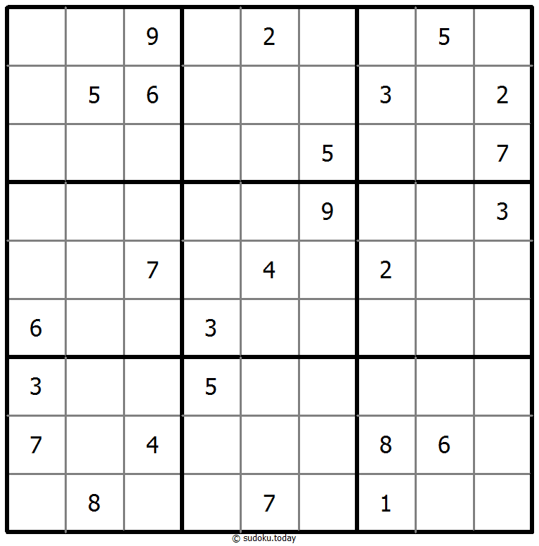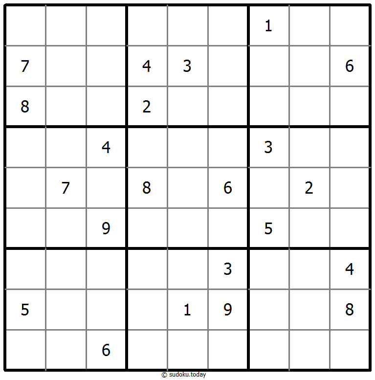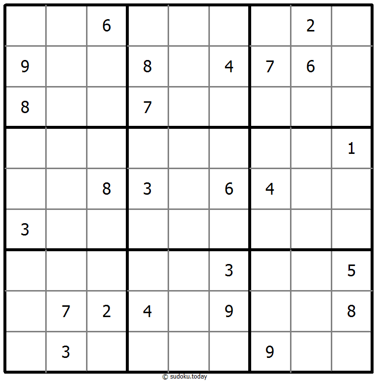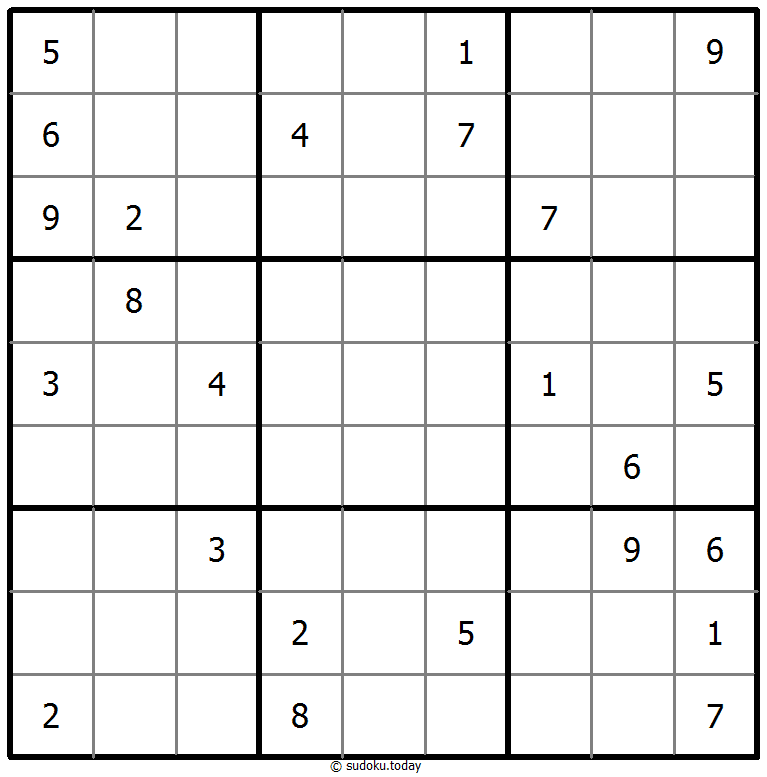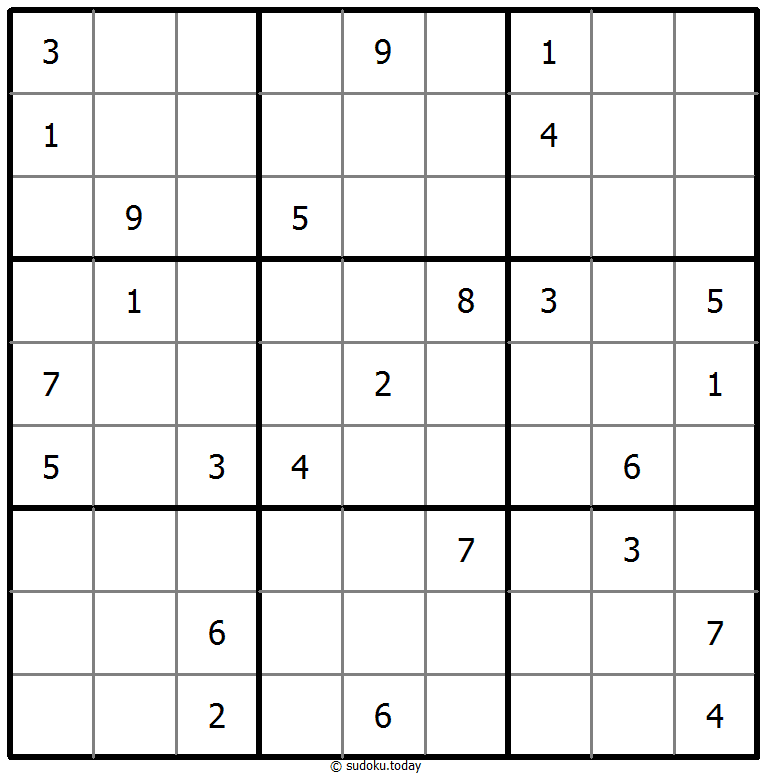 - 将1到9的数字放入每个空方块中,以便每个数字在每行、每列和9个3x3区域中恰好都出现一次。