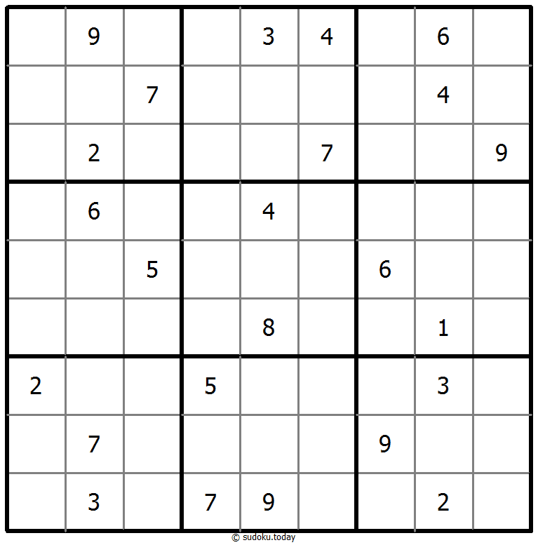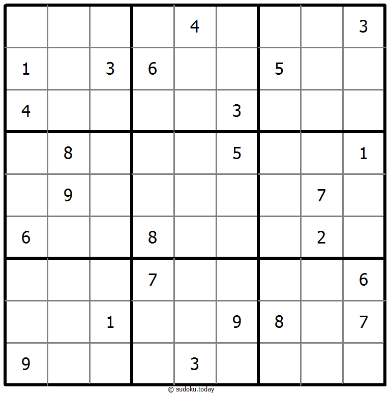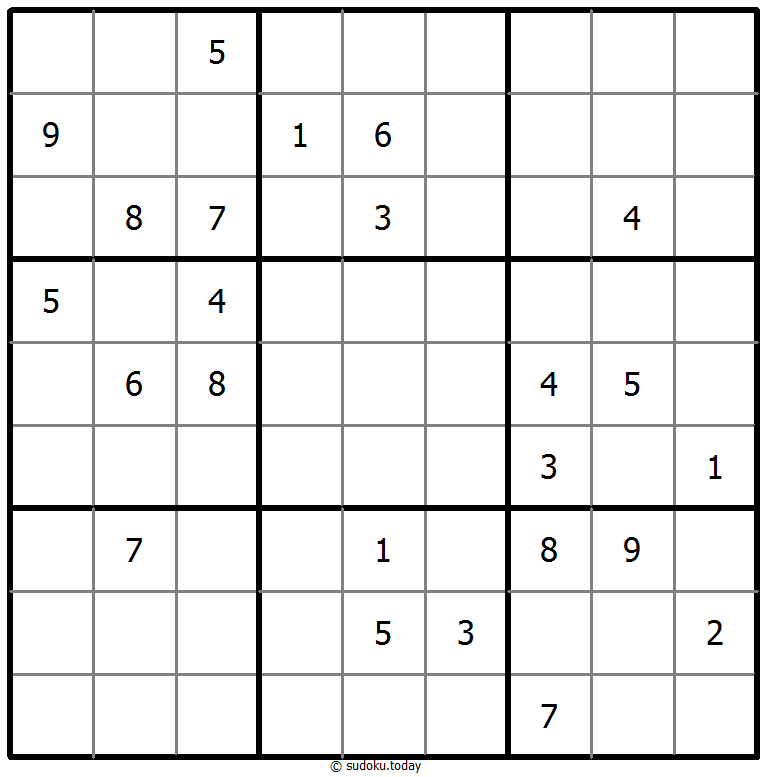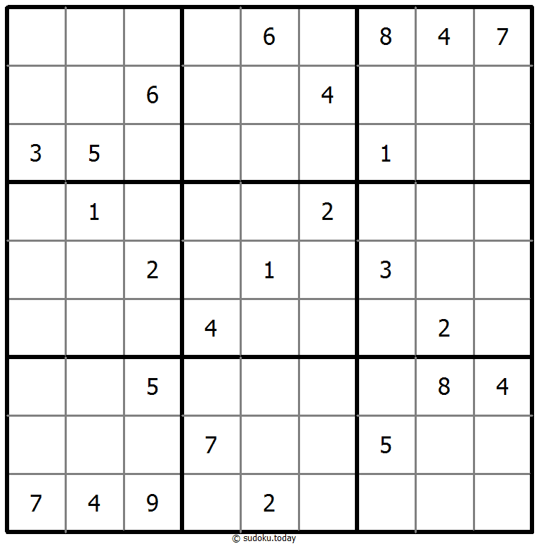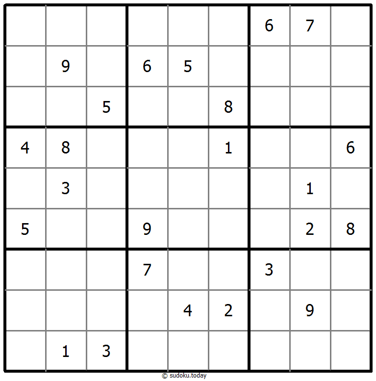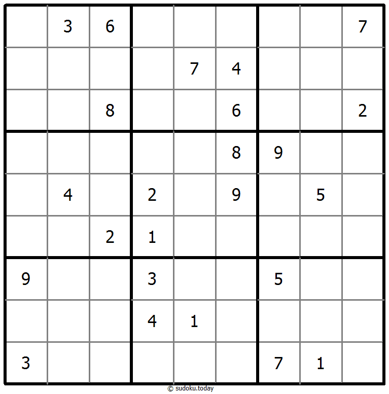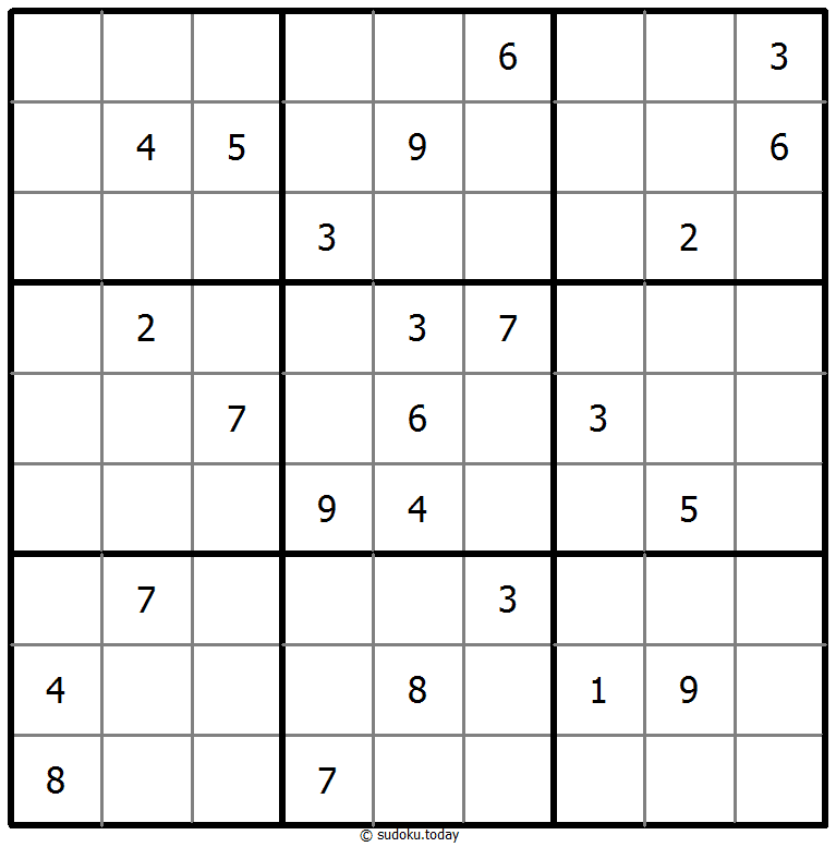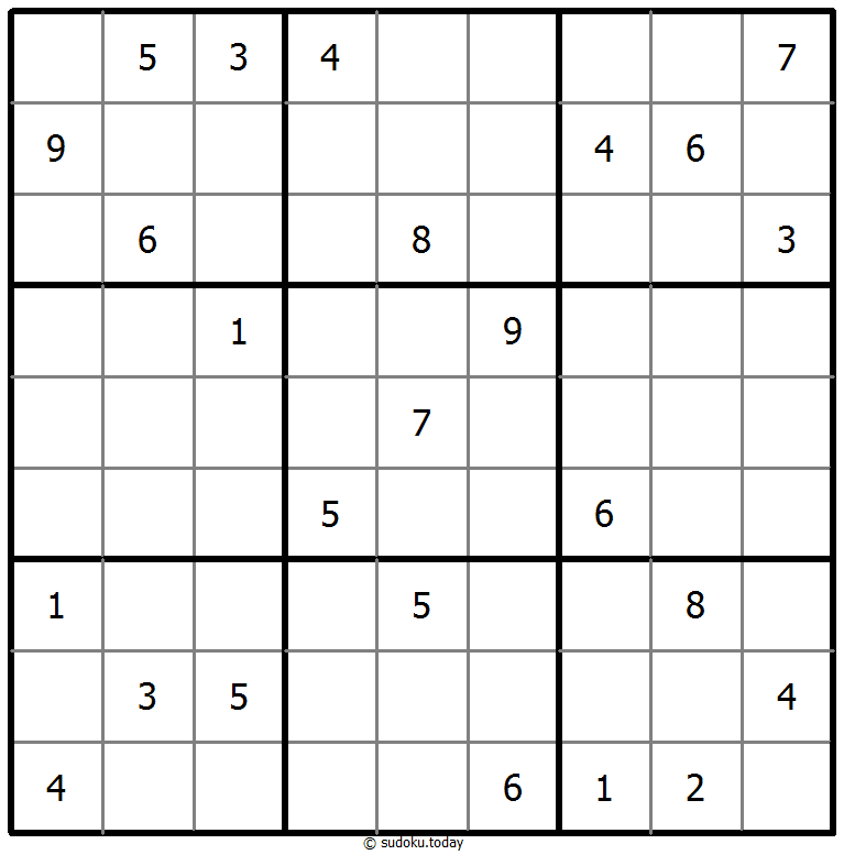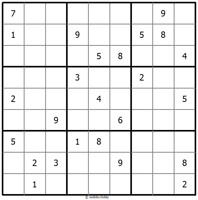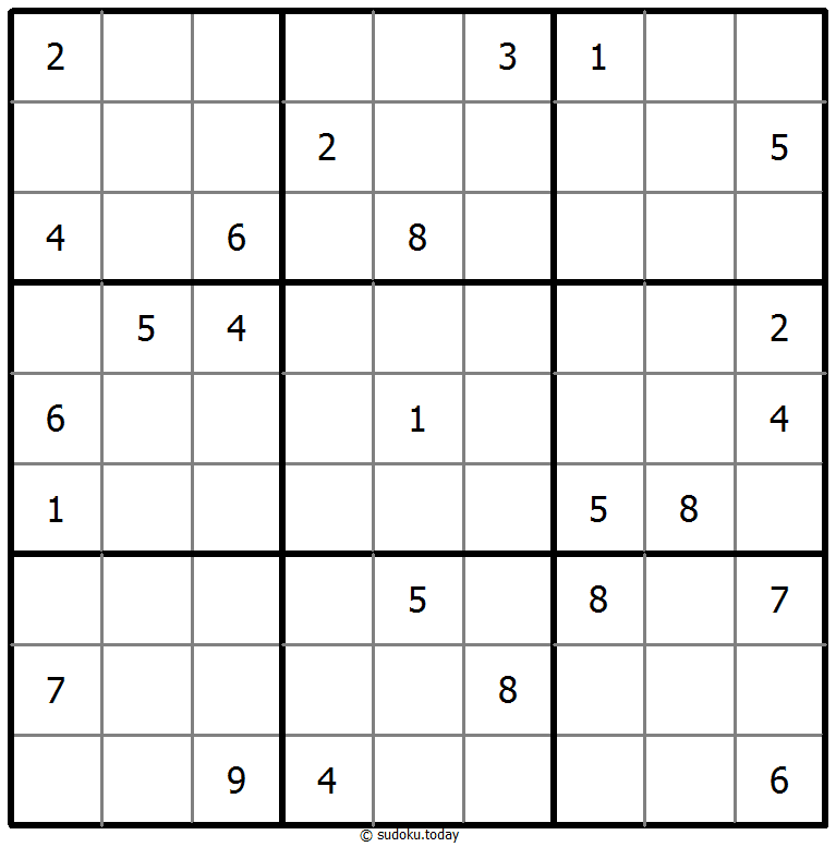 - 将1到9的数字放入每个空方块中,以便每个数字在每行、每列和9个3x3区域中恰好都出现一次。