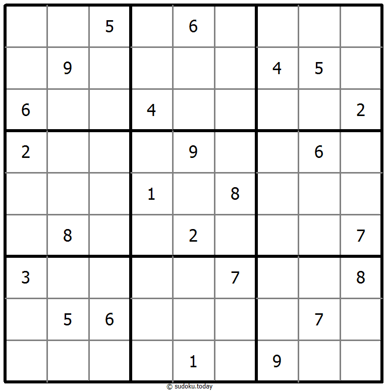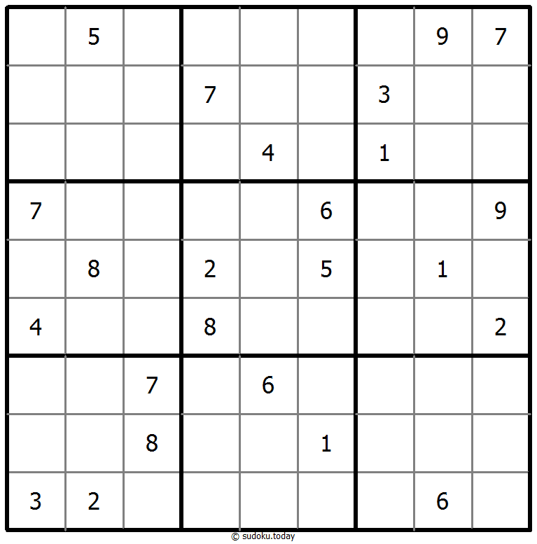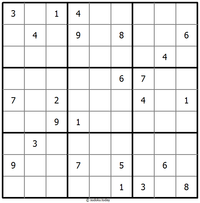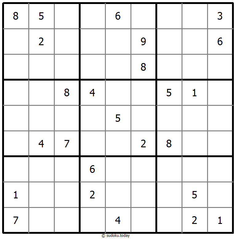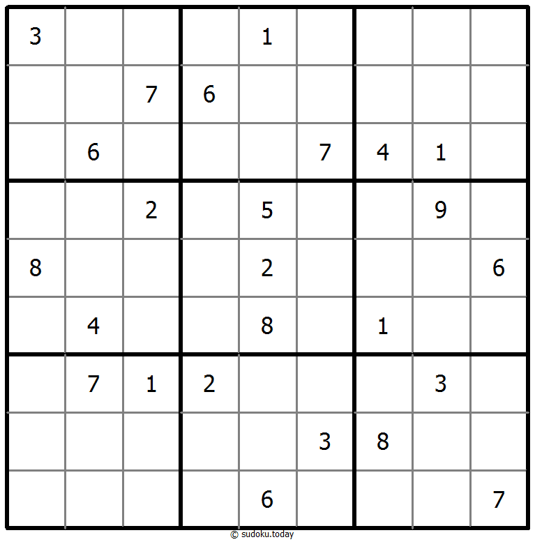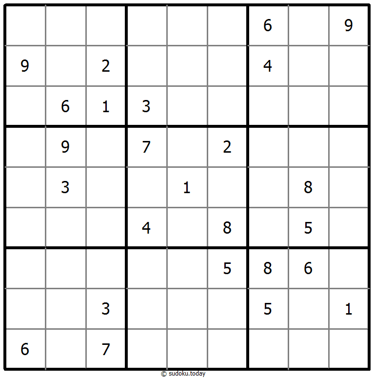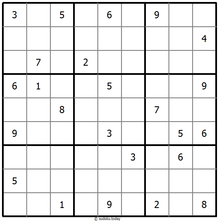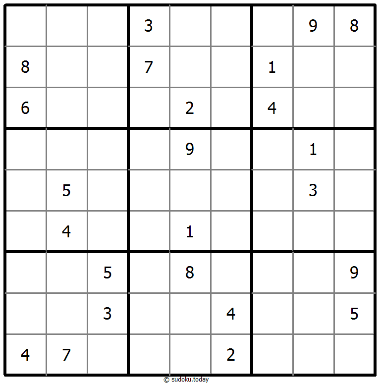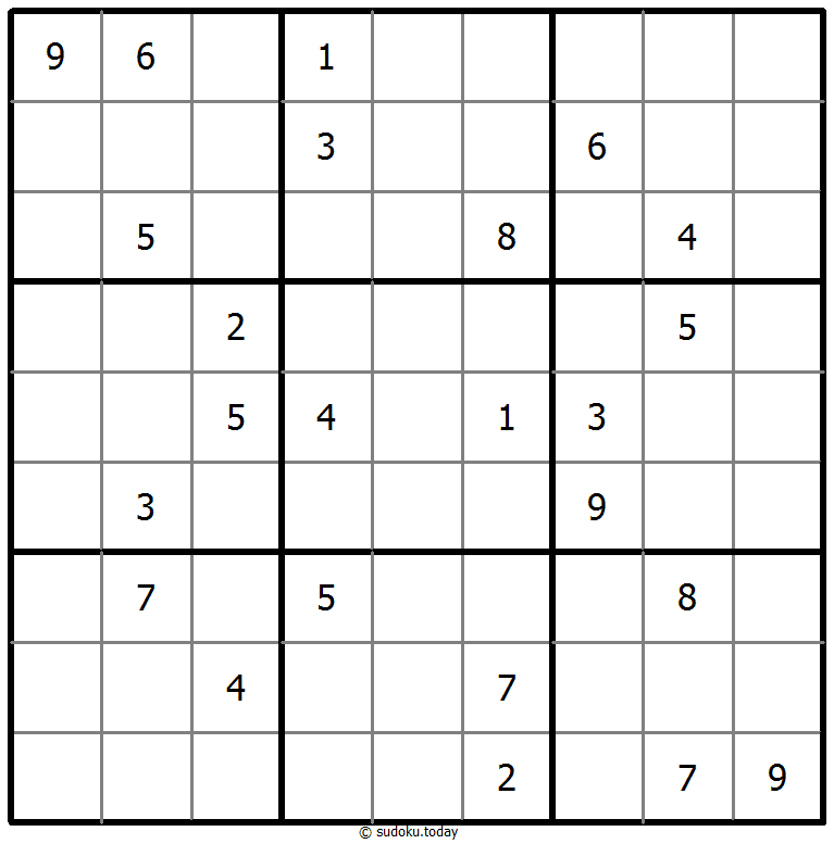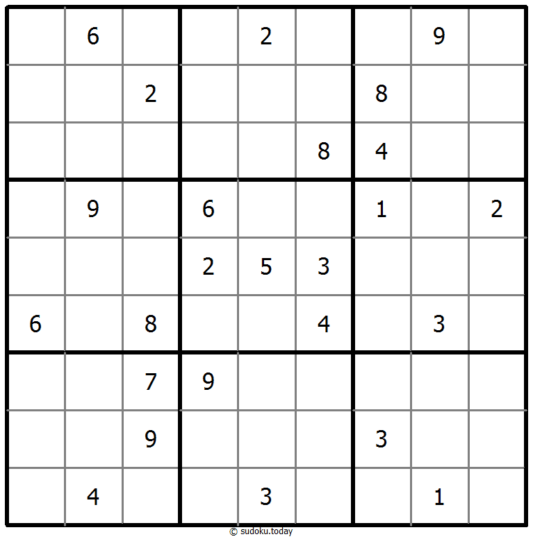 - 将1到9的数字放入每个空方块中,以便每个数字在每行、每列和9个3x3区域中恰好都出现一次。