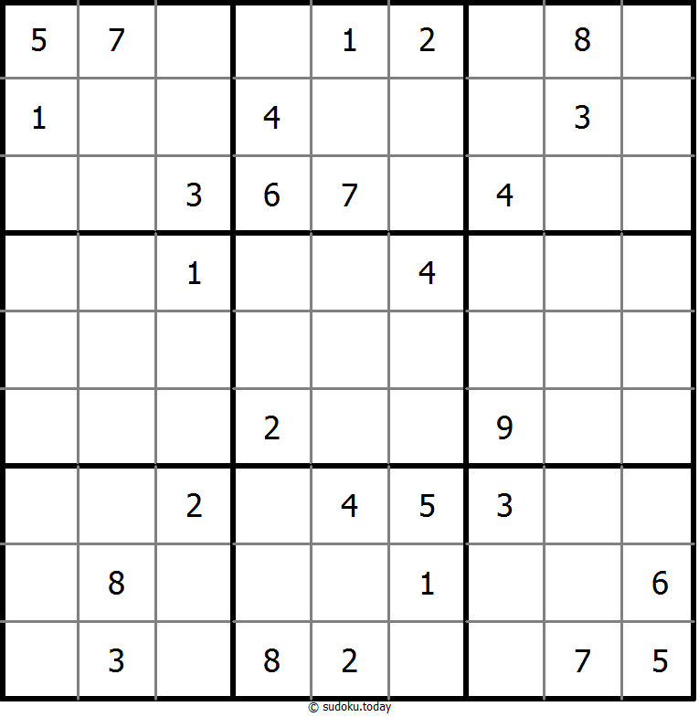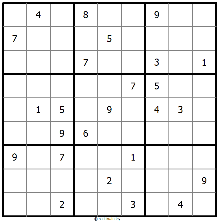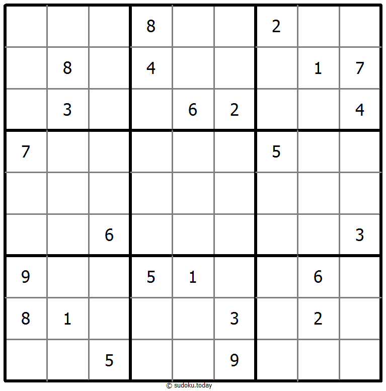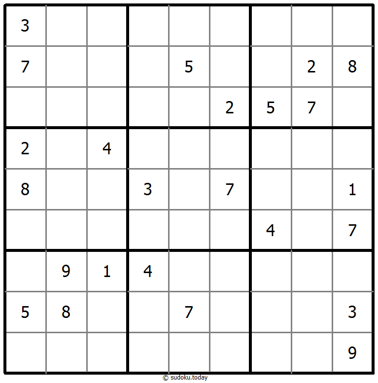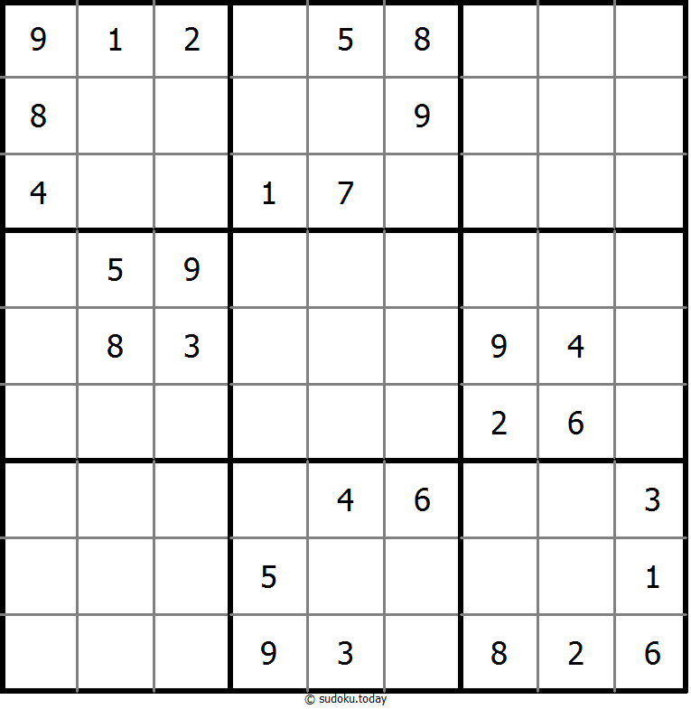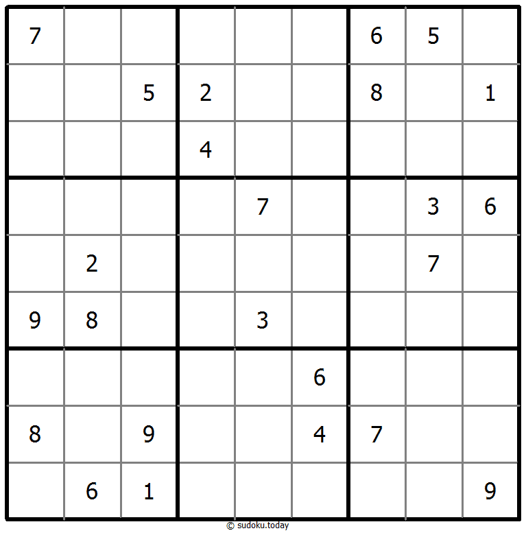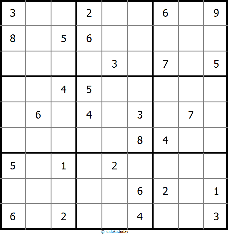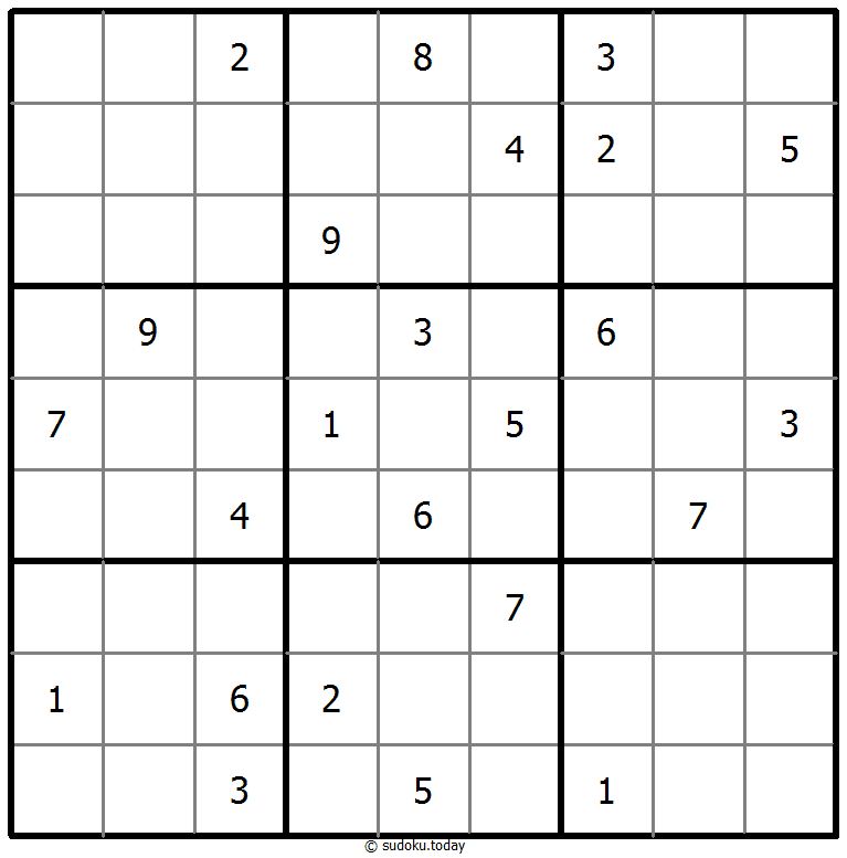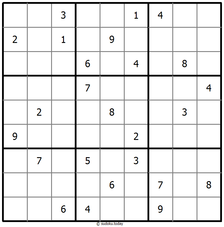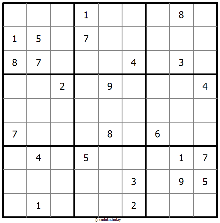 - 将1到9的数字放入每个空方块中,以便每个数字在每行、每列和9个3x3区域中恰好都出现一次。