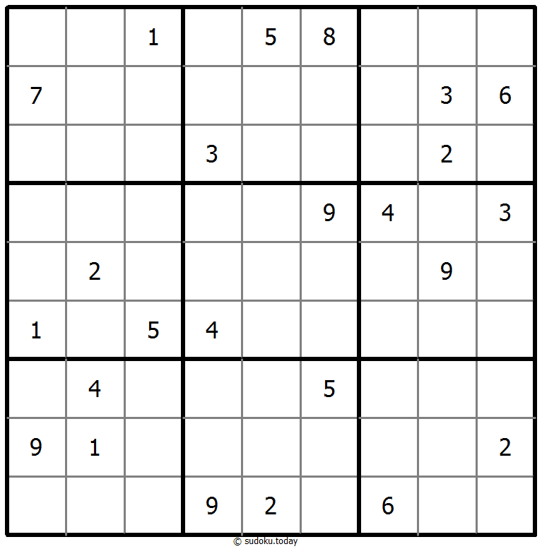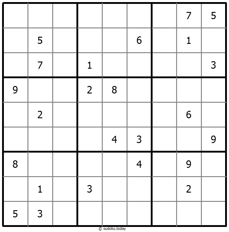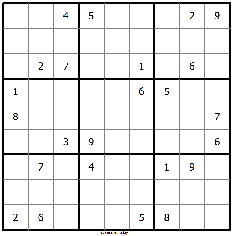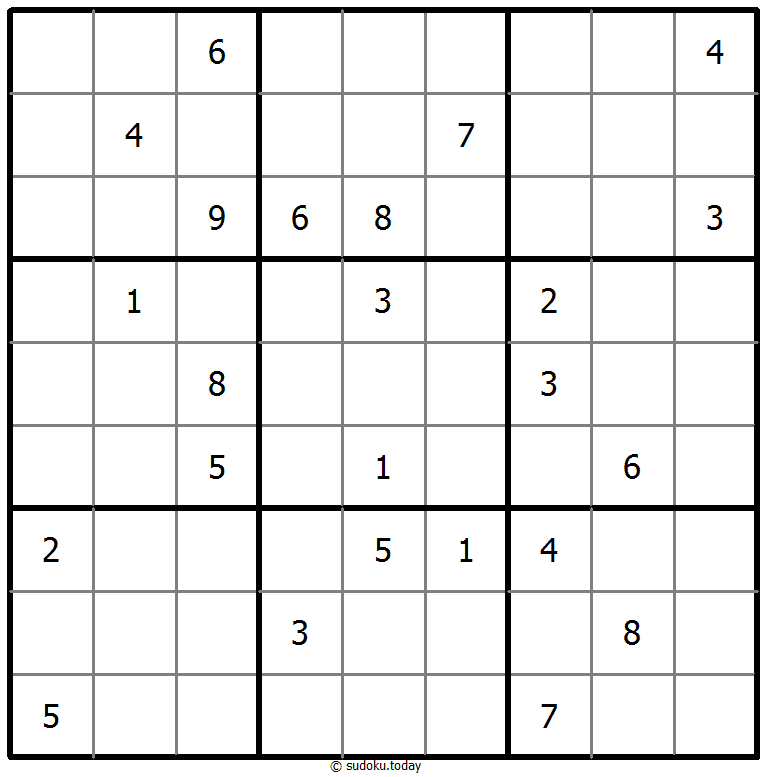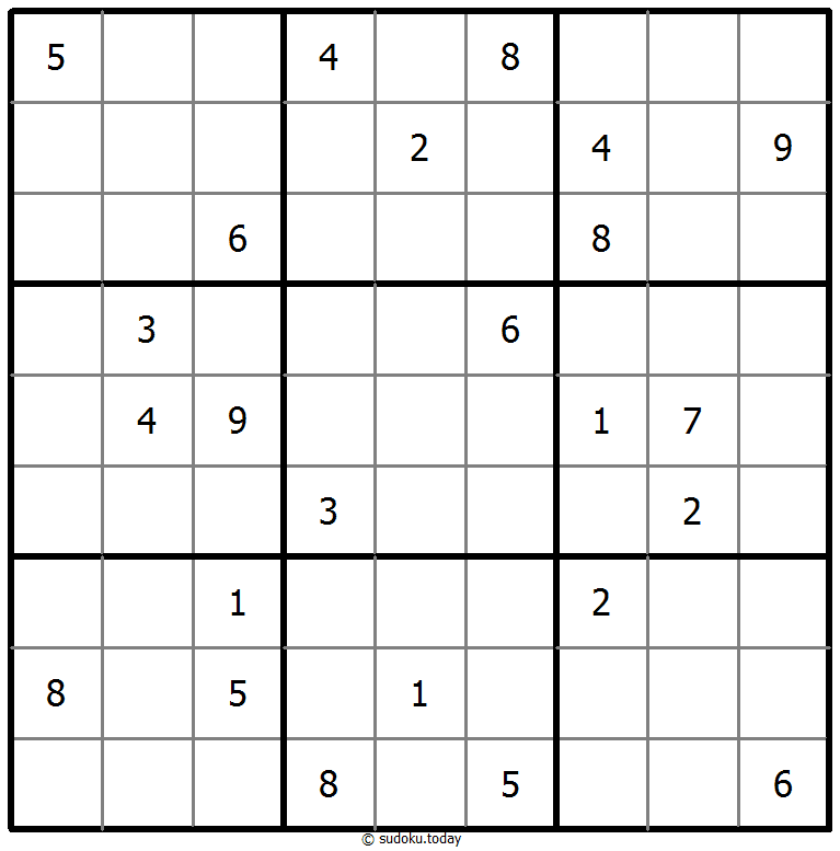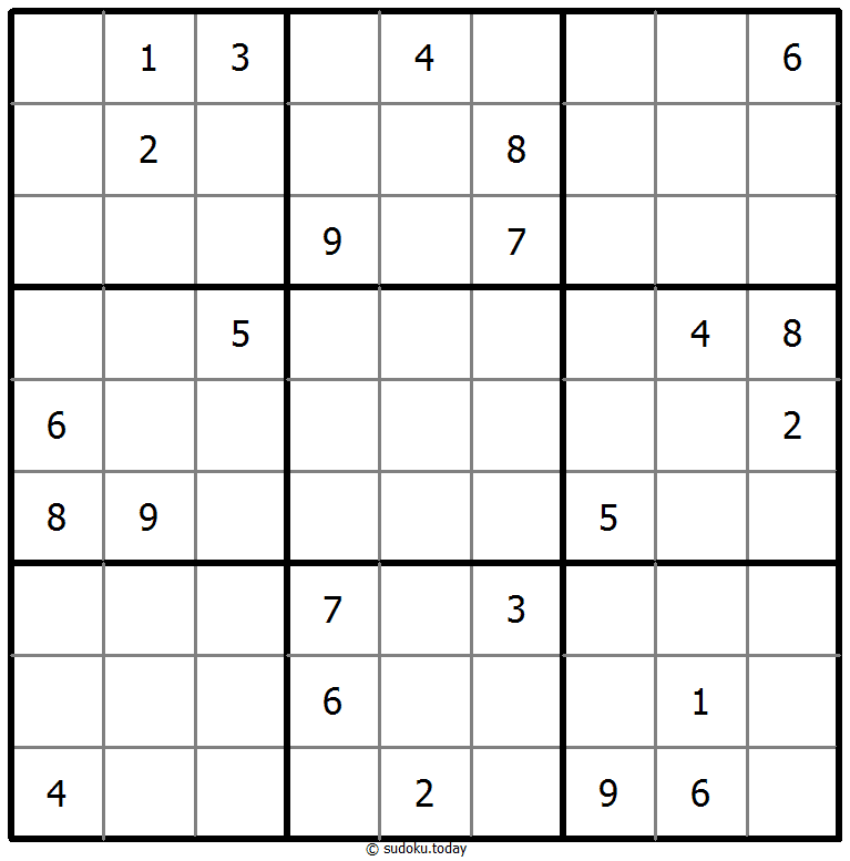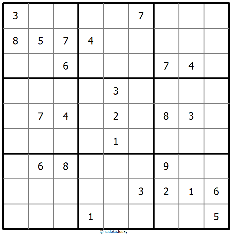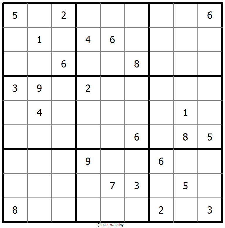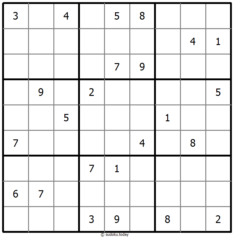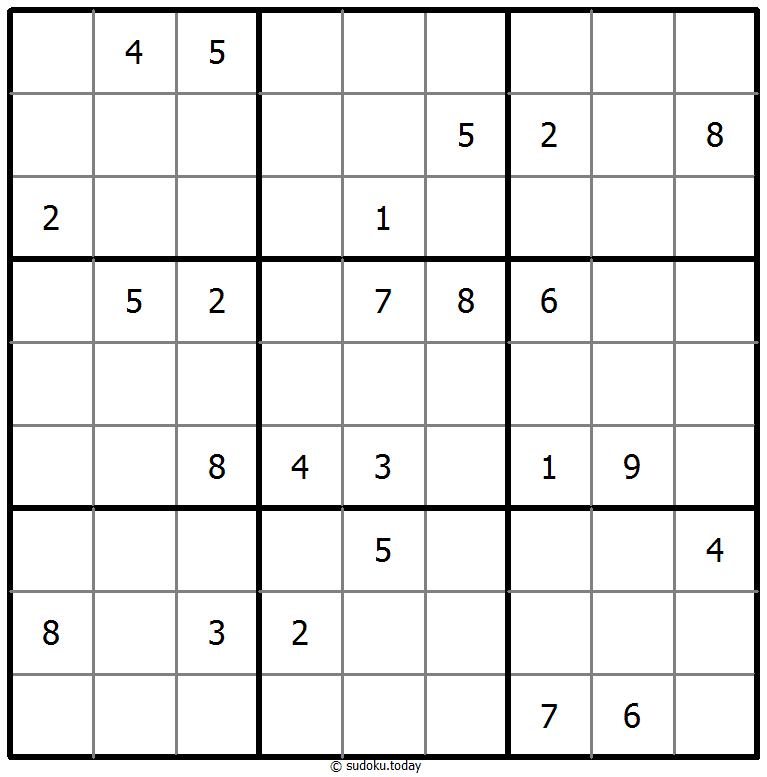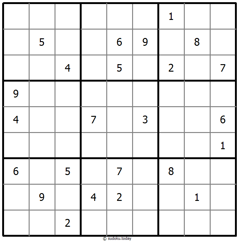 - 将1到9的数字放入每个空方块中,以便每个数字在每行、每列和9个3x3区域中恰好都出现一次。