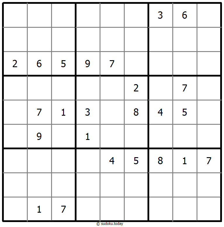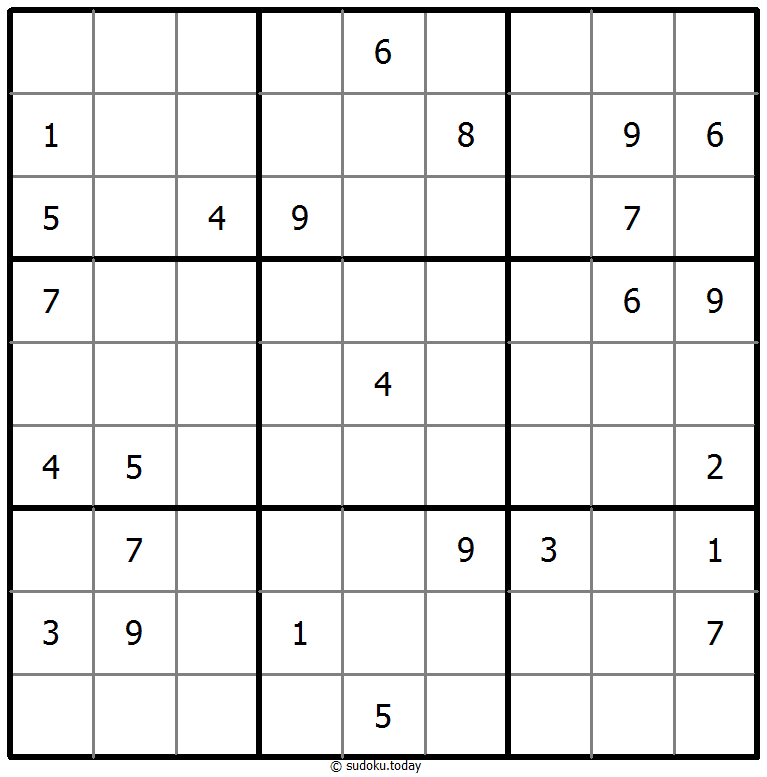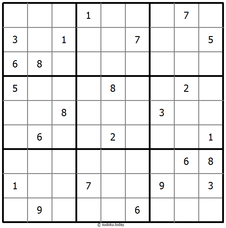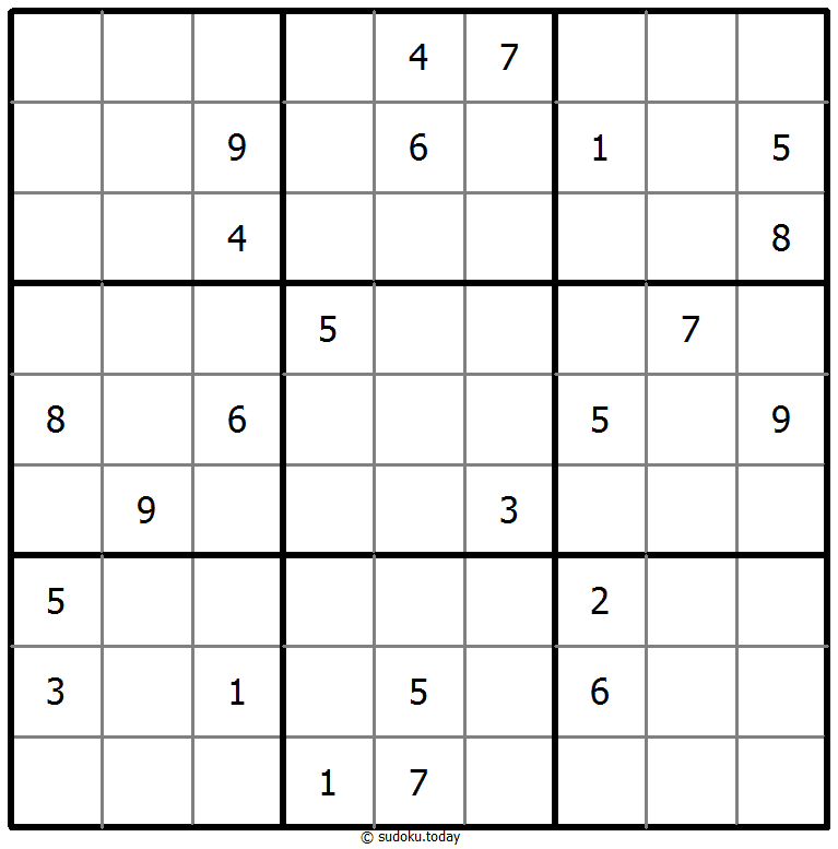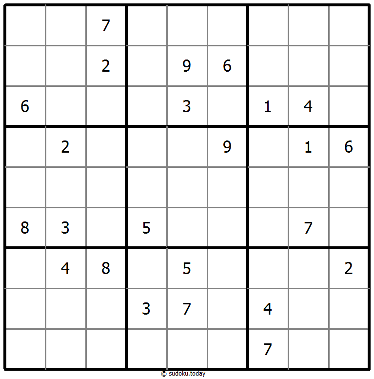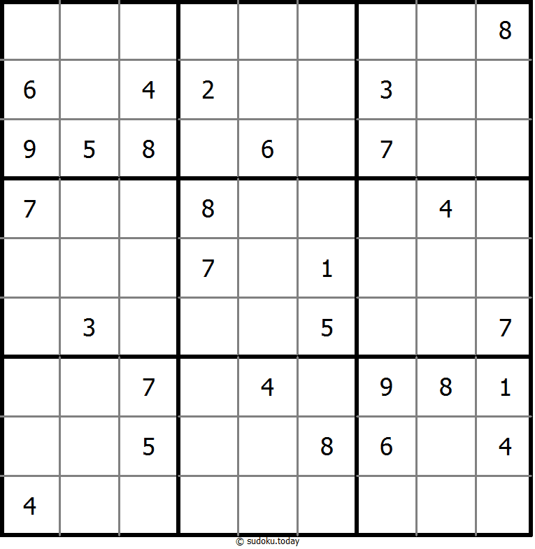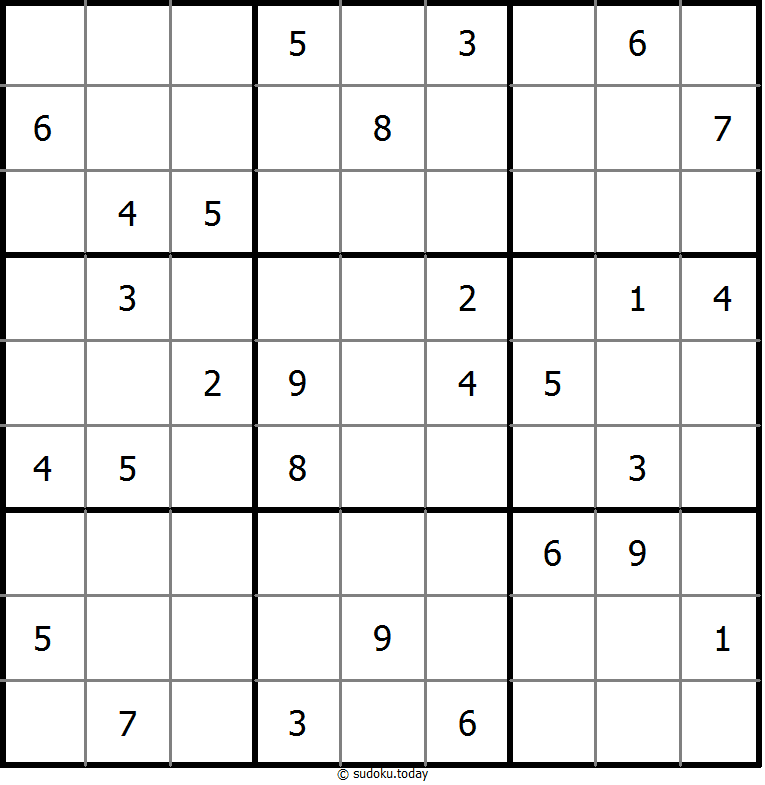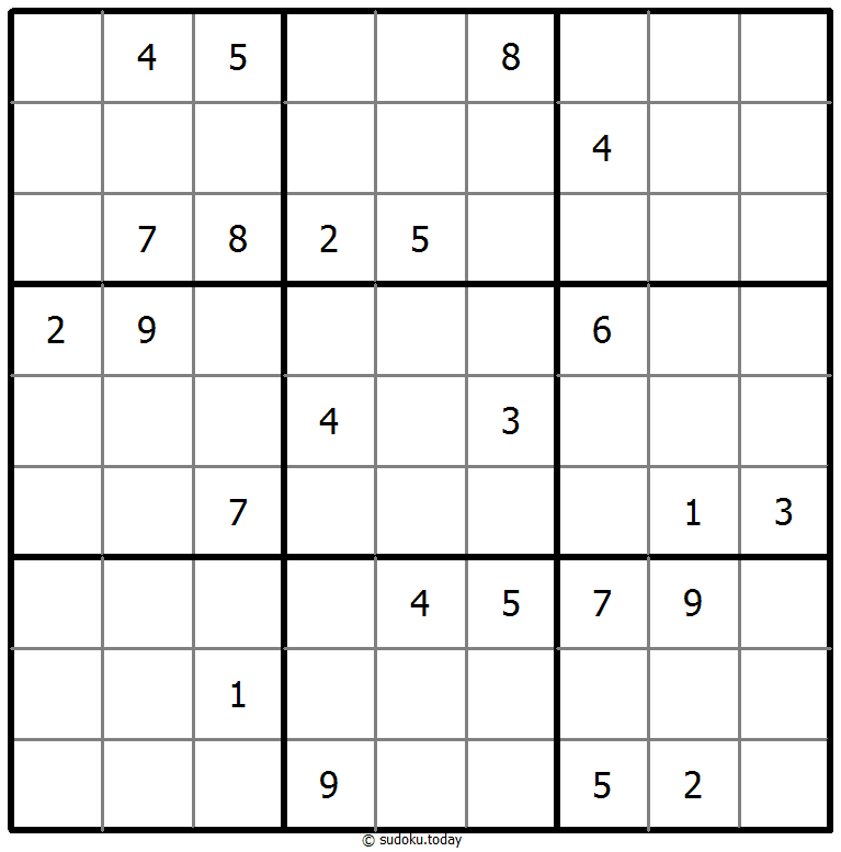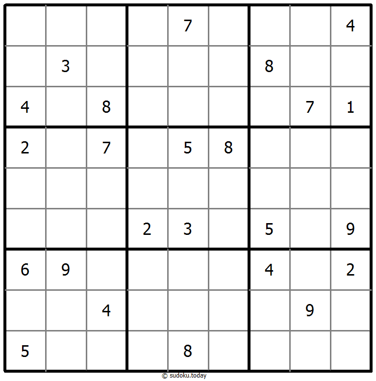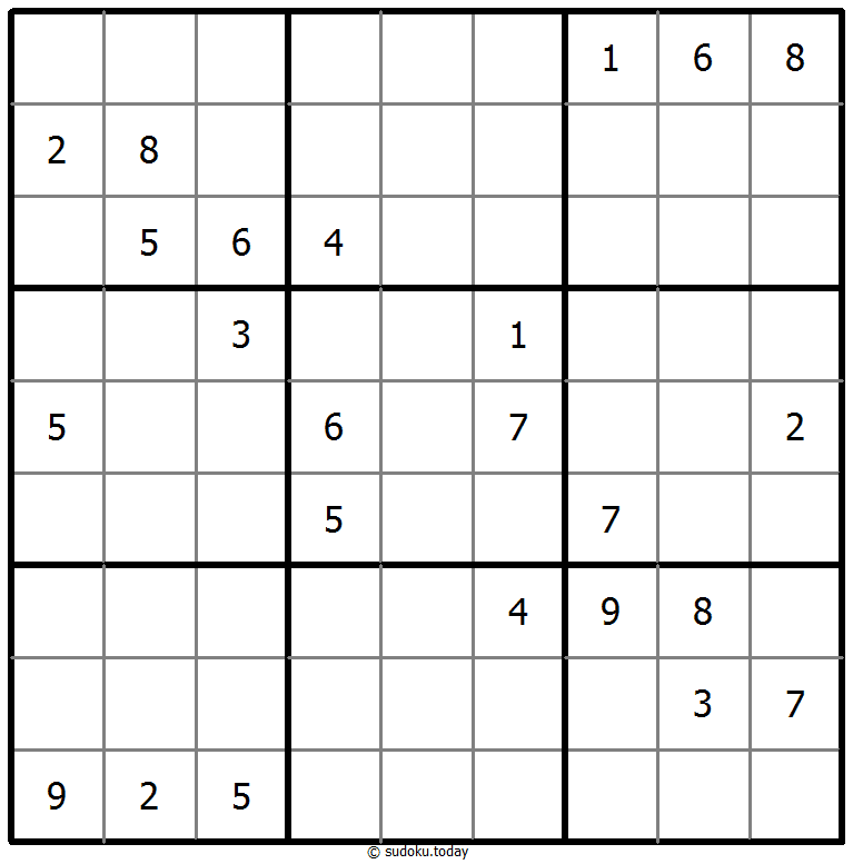 - 将1到9的数字放入每个空方块中,以便每个数字在每行、每列和9个3x3区域中恰好都出现一次。