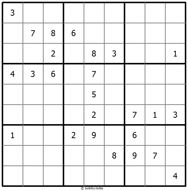 将1到9的数字放入每个空方块中,以便每个数字在每行、每列和9个3x3区域中恰好都出现一次。