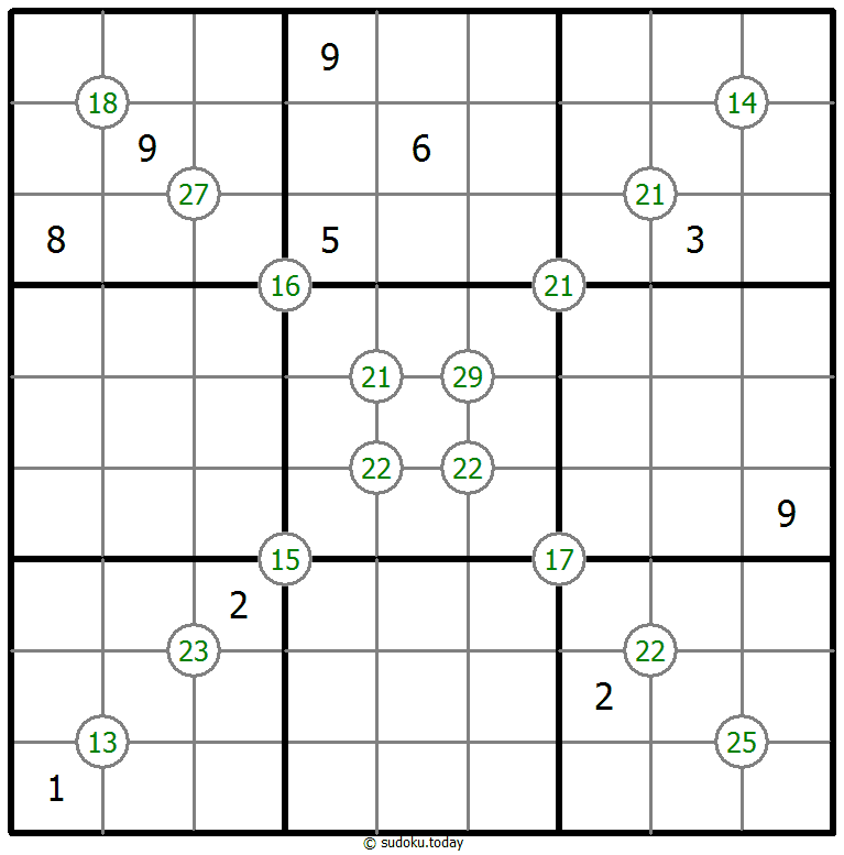 • 四个单元格交叉处的每个数字都是这四个单元格中的数字之和。